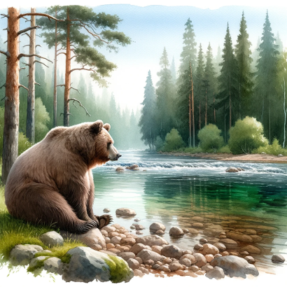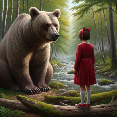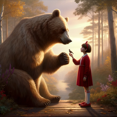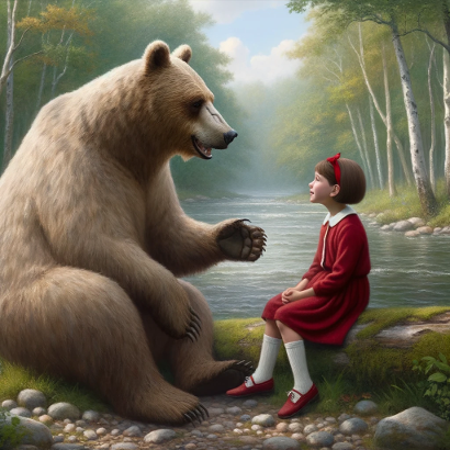 | "A disheartened bear sat by the lake, hanging its head." | "He is meeting a girl and introducing himself." | ||||||