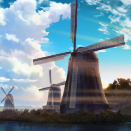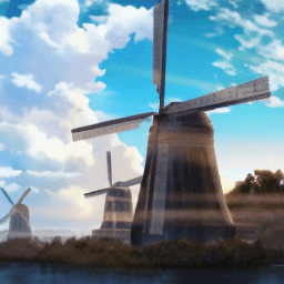 | "An anime scene with windmills standing tall in a field and blue sky" | FPS = 30 | FPS = 10 | FPS = 5 |